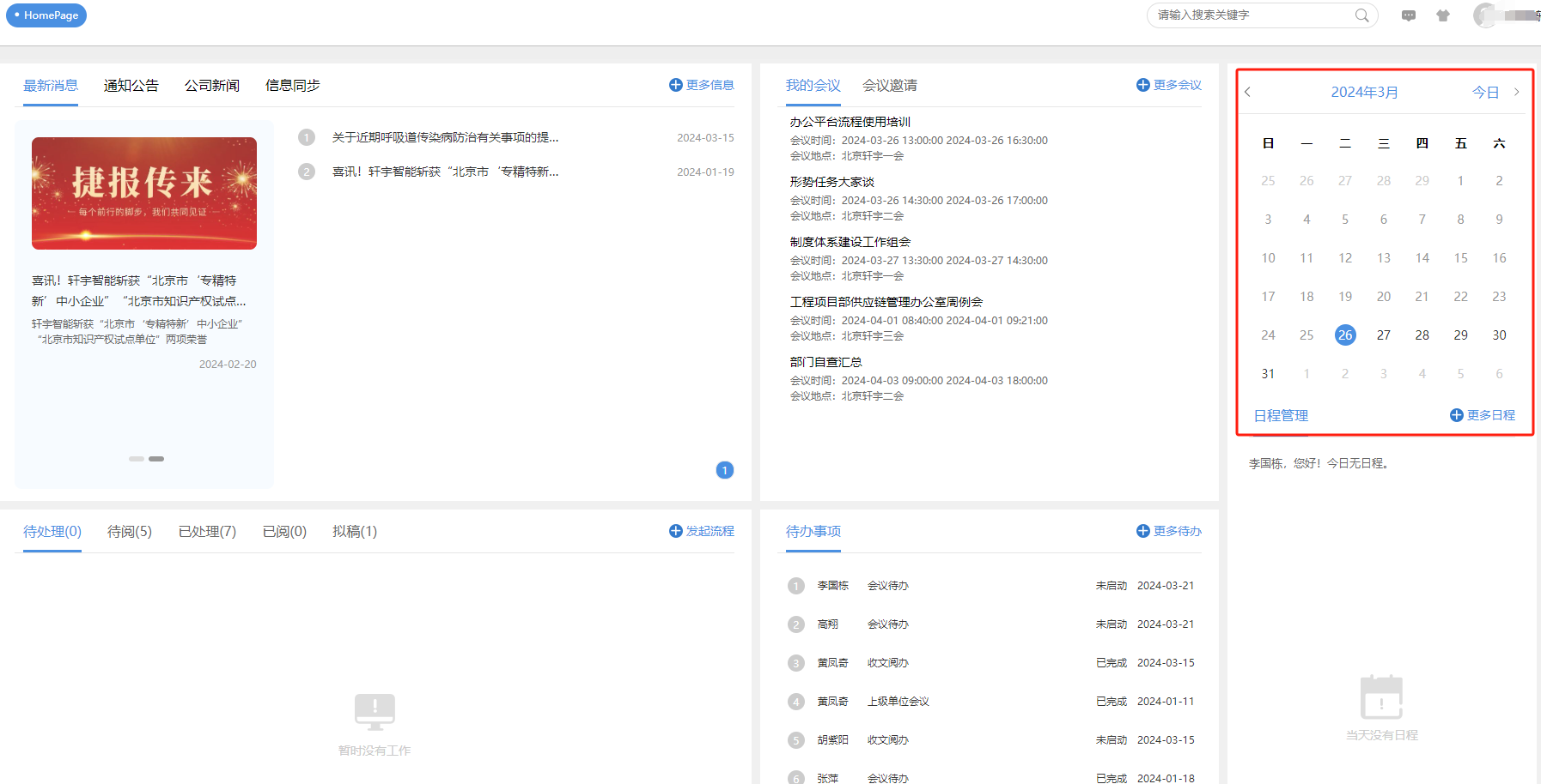开启提醒后在日程符合相应的条件后会在每次登陆办公系统的时候提醒;